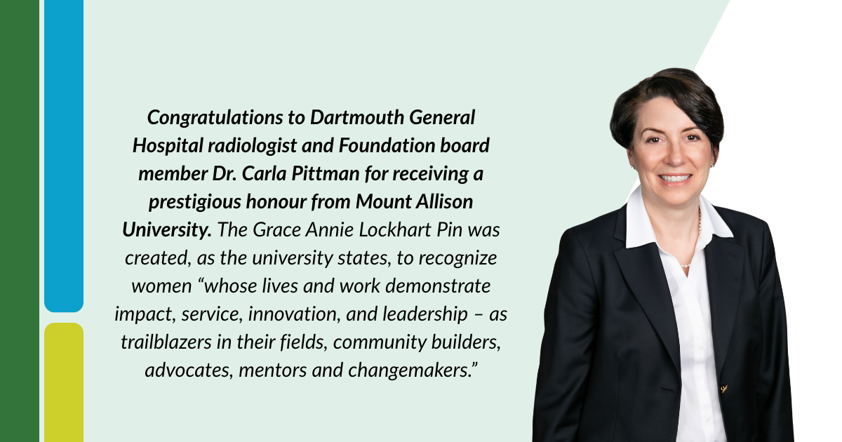 Congratulations to Dartmouth General Hospital radiologist and Foundation board member Dr. Carla Pittman