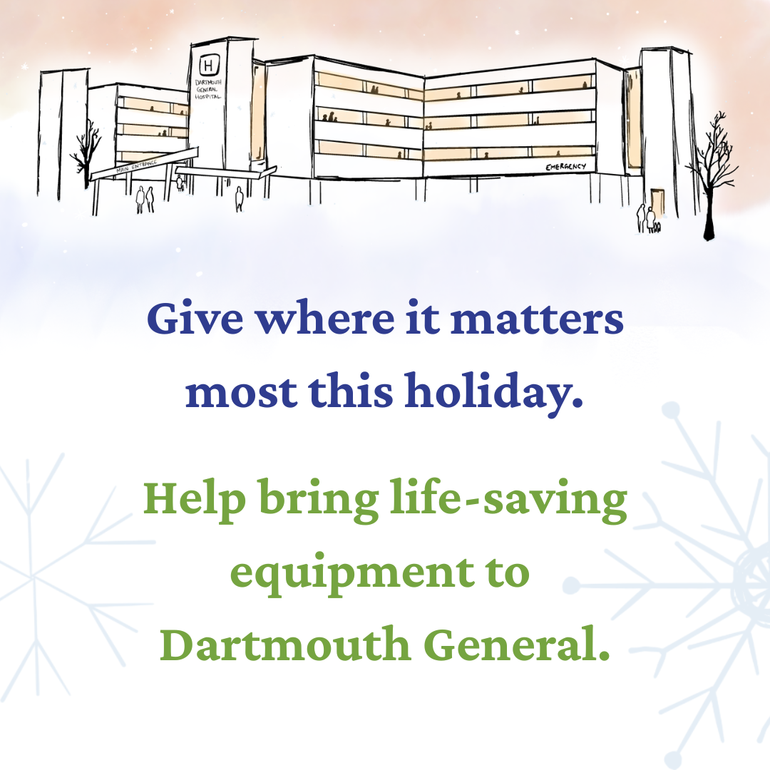 Right now, Dartmouth General has just one older model shared between Emergency and ICU. Your gift will help purchase two new machines, ensuring both teams can respond in the moments that decide everything.